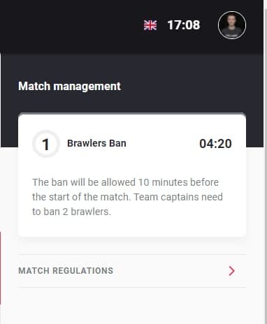 1. Ten minutes before the start of the match, a ban menu will become available for 5 minutes on the match page. Only team captains are allowed to ban brawlers. Don’t forget to log in to the website.